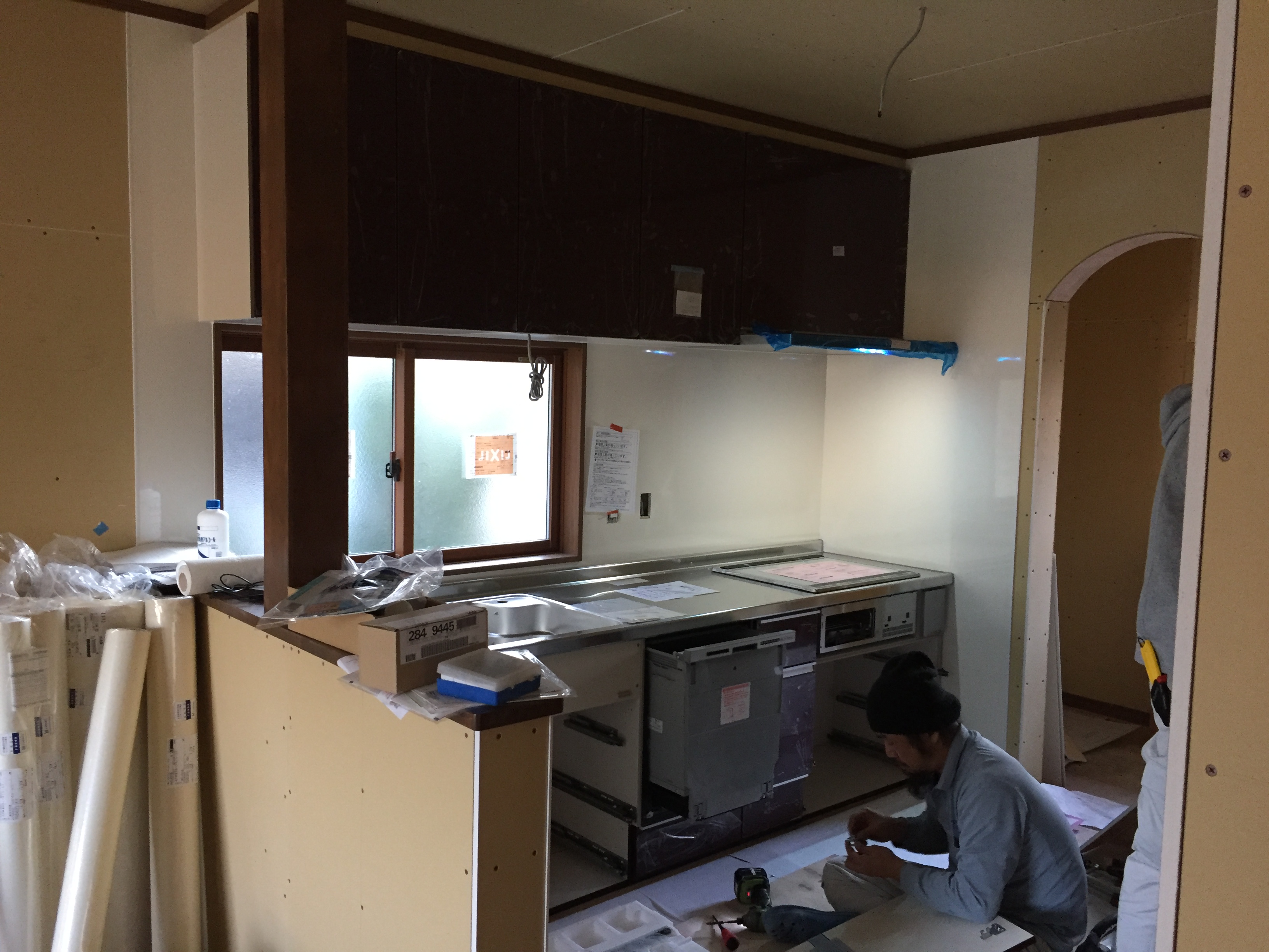 大規模改装工事進捗状況!只今システムキッチン組立中です!