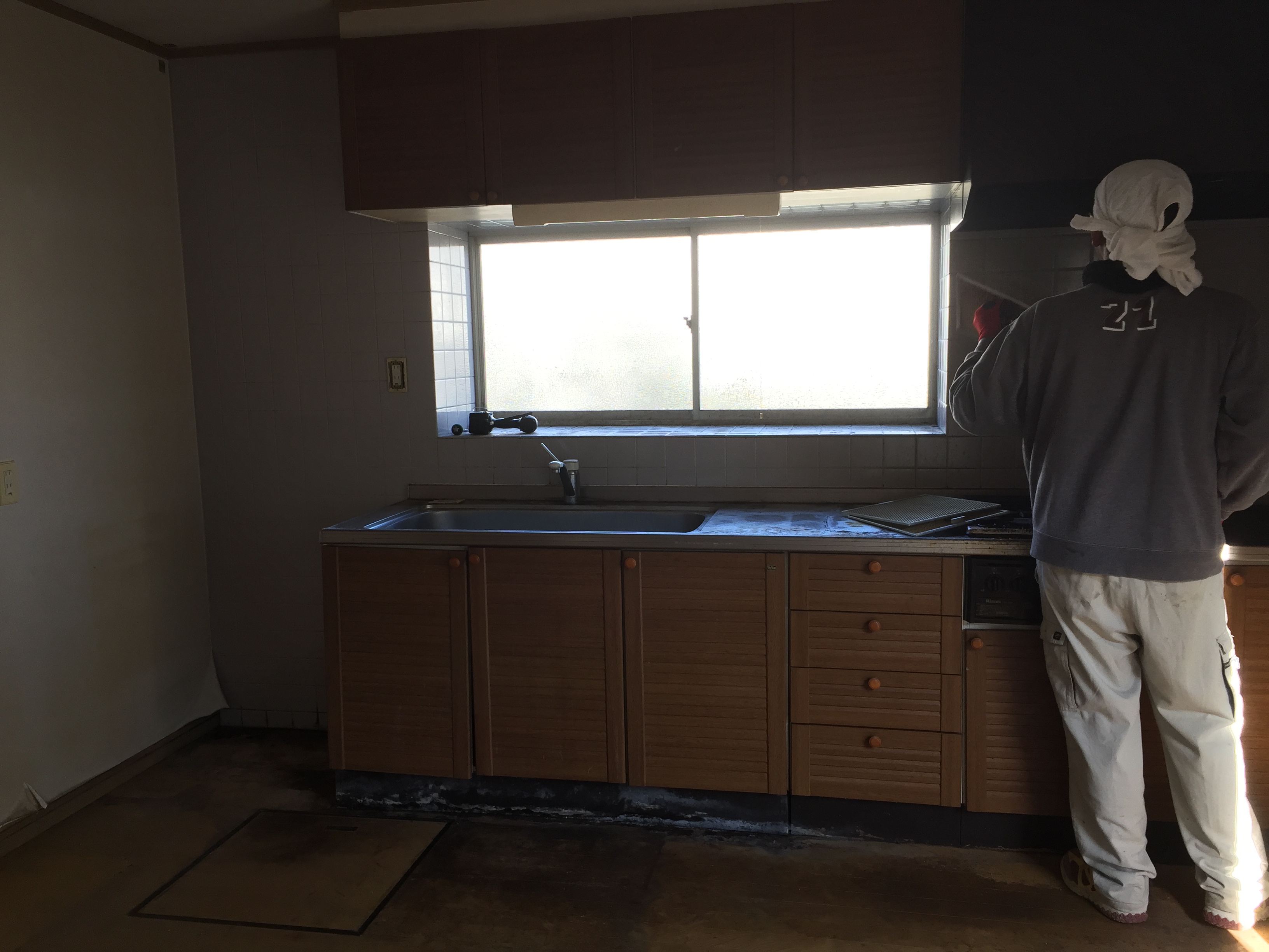 DK改装工事着工!先日完了した浴室工事に引続きましてDK工事を着工しました。こ れから既存キッチンの解体です。