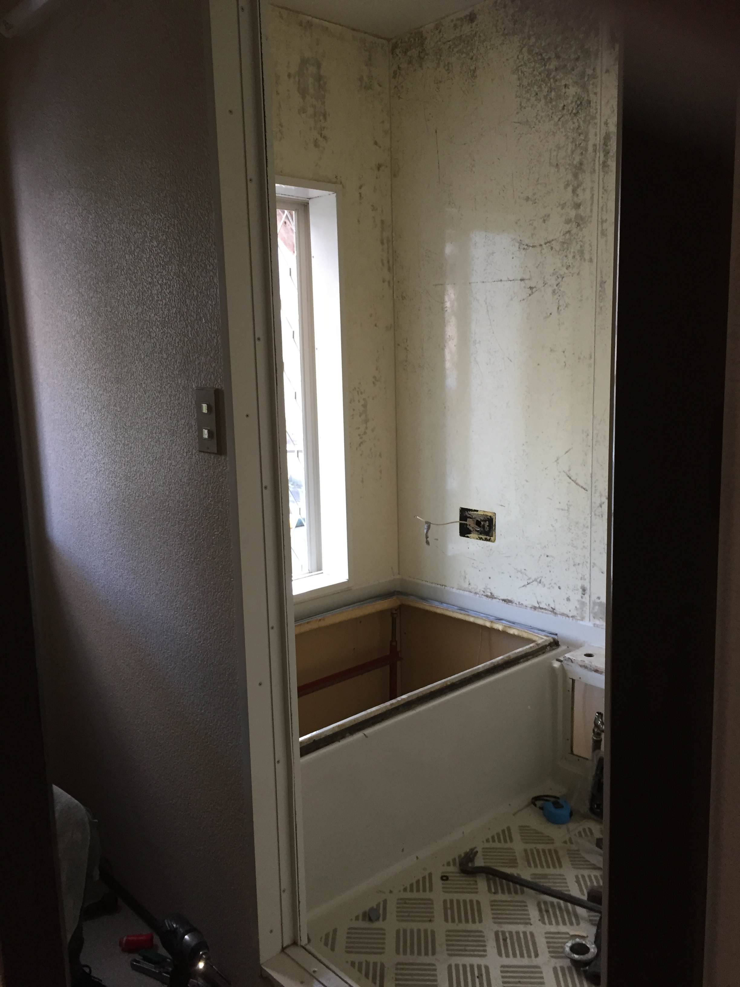 浴室改装工事着工!今回は既存ユニットバスから新しく断熱ユニットバスへの取替工 事です。これから解体工事に取り掛かります!
