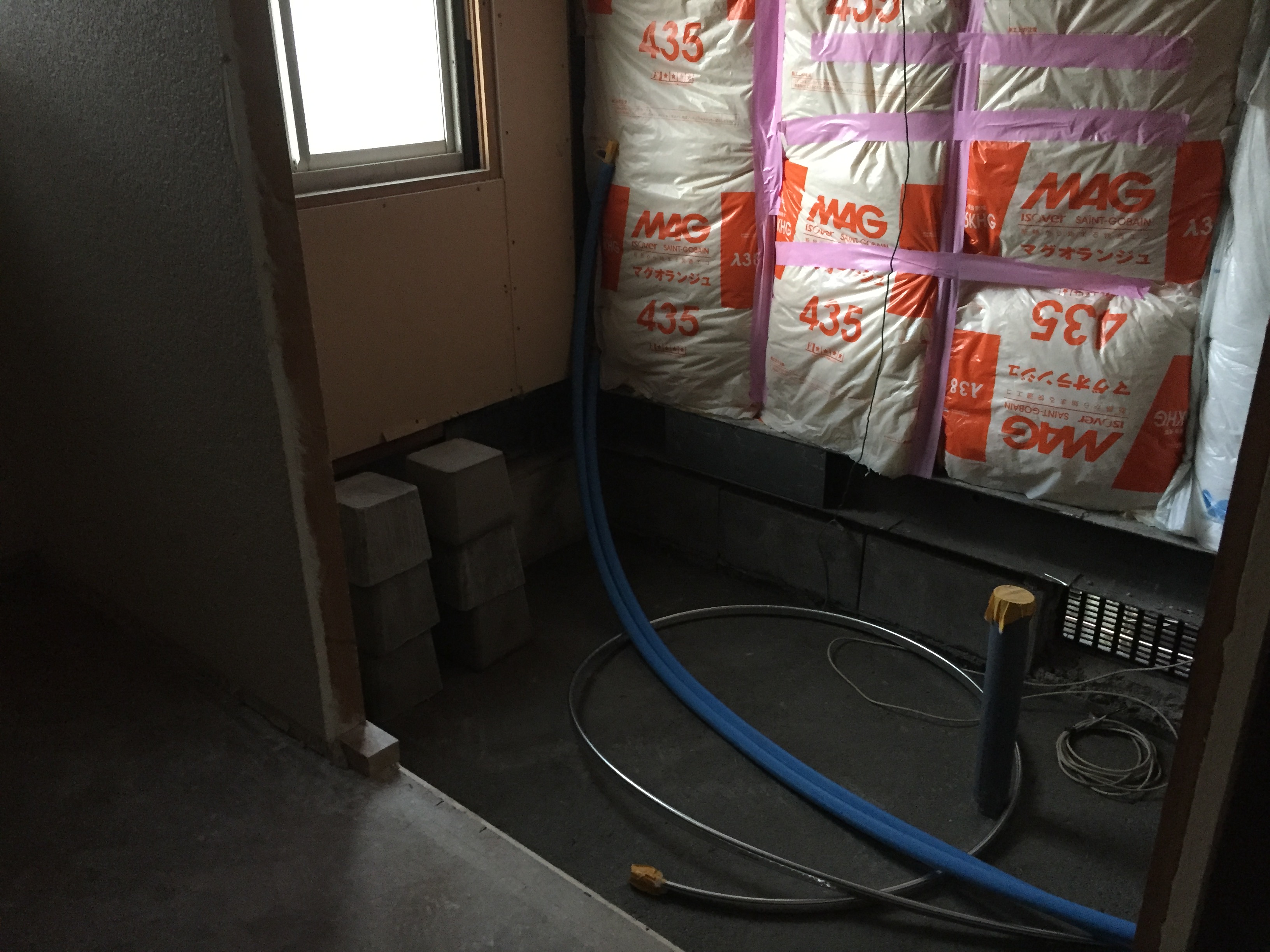浴室改装工事進捗状況!既存鉄骨の撤去・補強、土間コンクリートの打設・新規設備 配管も無事完了しました。