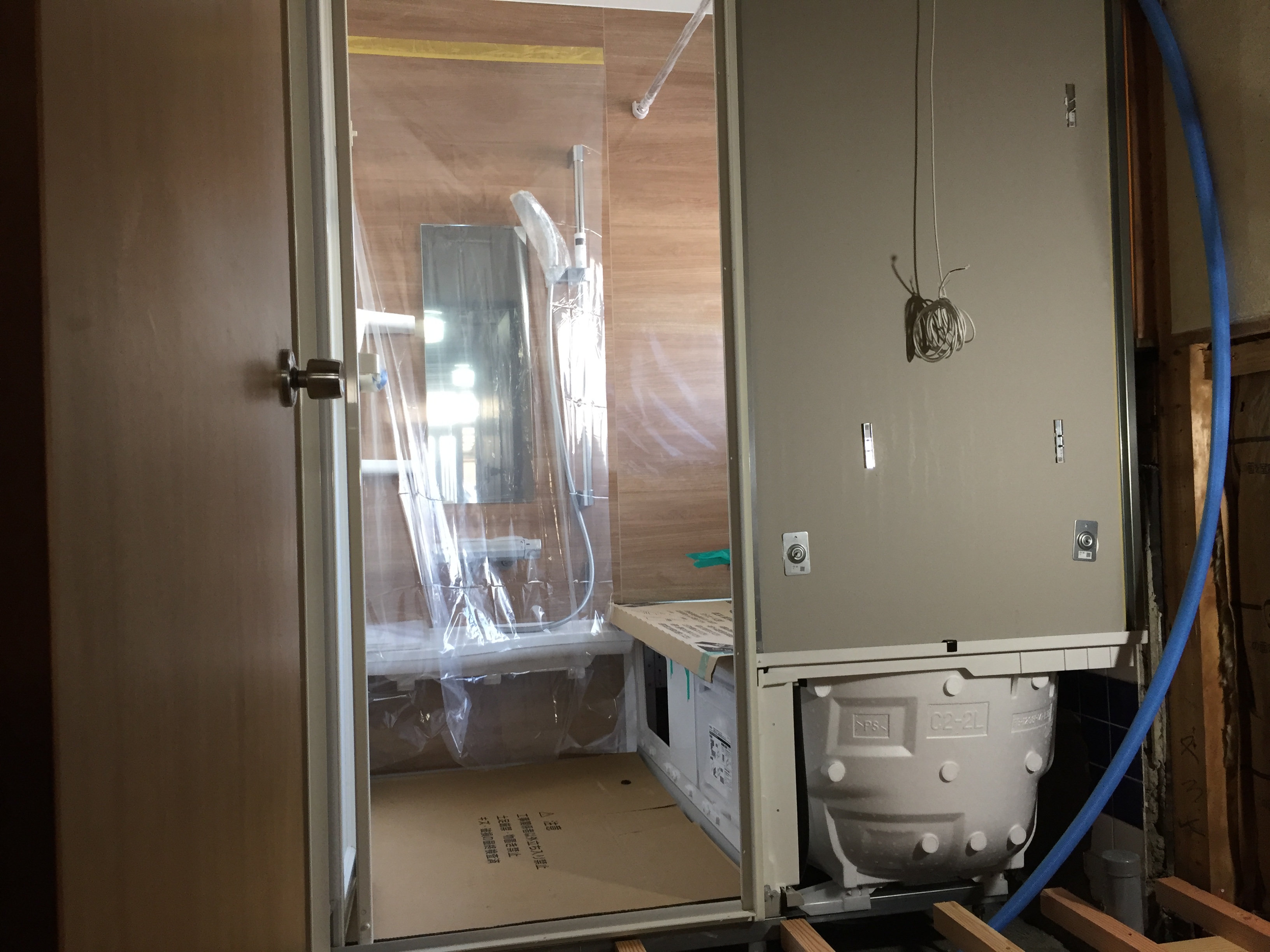 浴室・洗面室改装工事進捗状況!ユニットバス組立完了しました。只今洗面室の造作 工事中です!