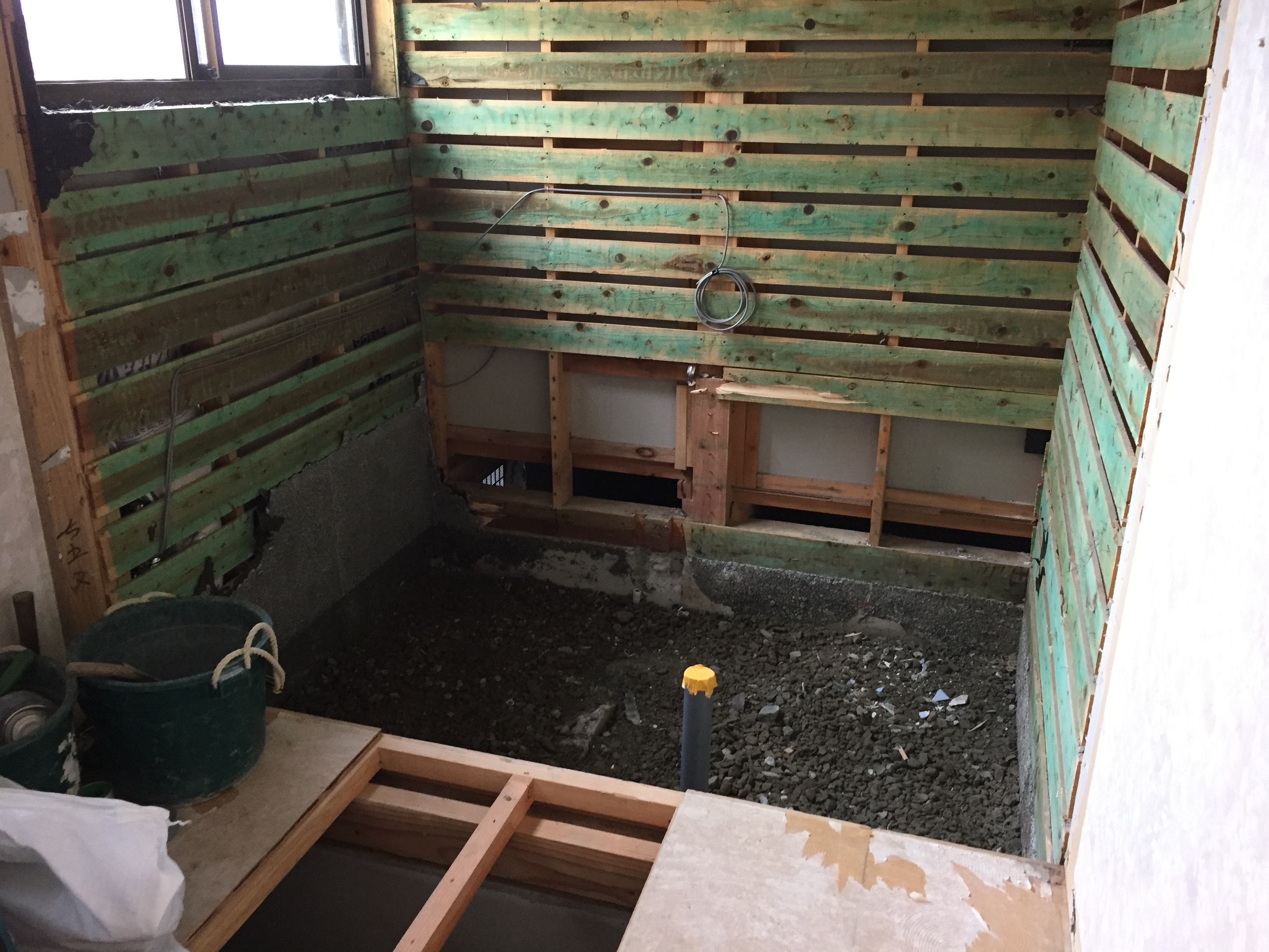 浴室・洗面室改装工事進捗状況!既存在来タイル浴室の解体・新規配管が完了しまし た。これから土間コンクリートを打設します!