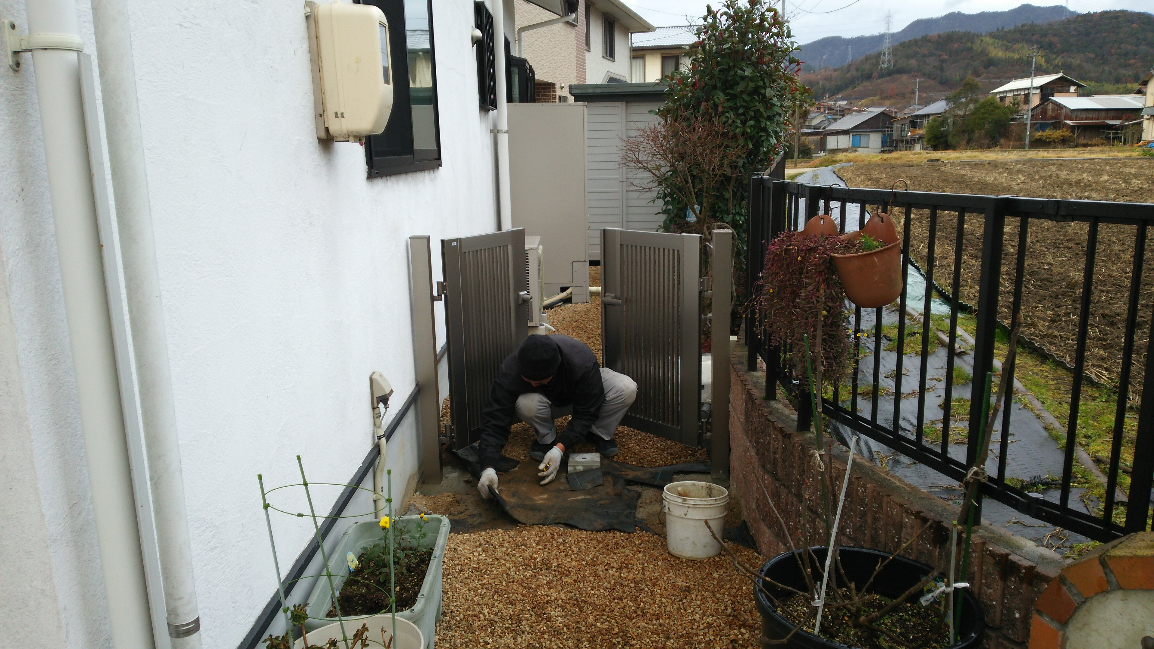 エクステリア工事進行中です。門扉を取付けて全ての工事終了まで、あと少しです。