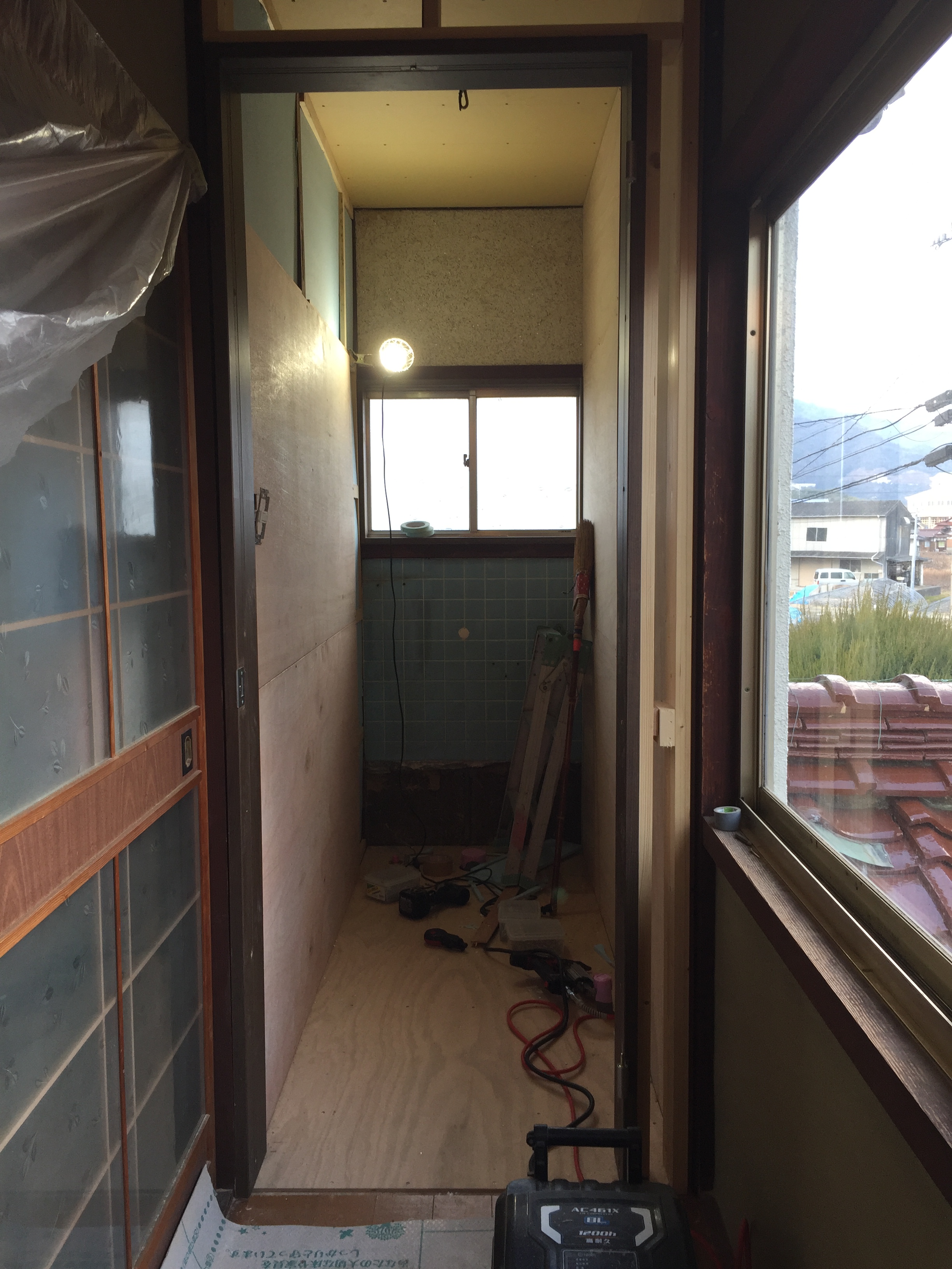 2階トイレ改装工事進捗状況!只今造作工事中です。2階の狭い中での作業で頑張って もらってます!