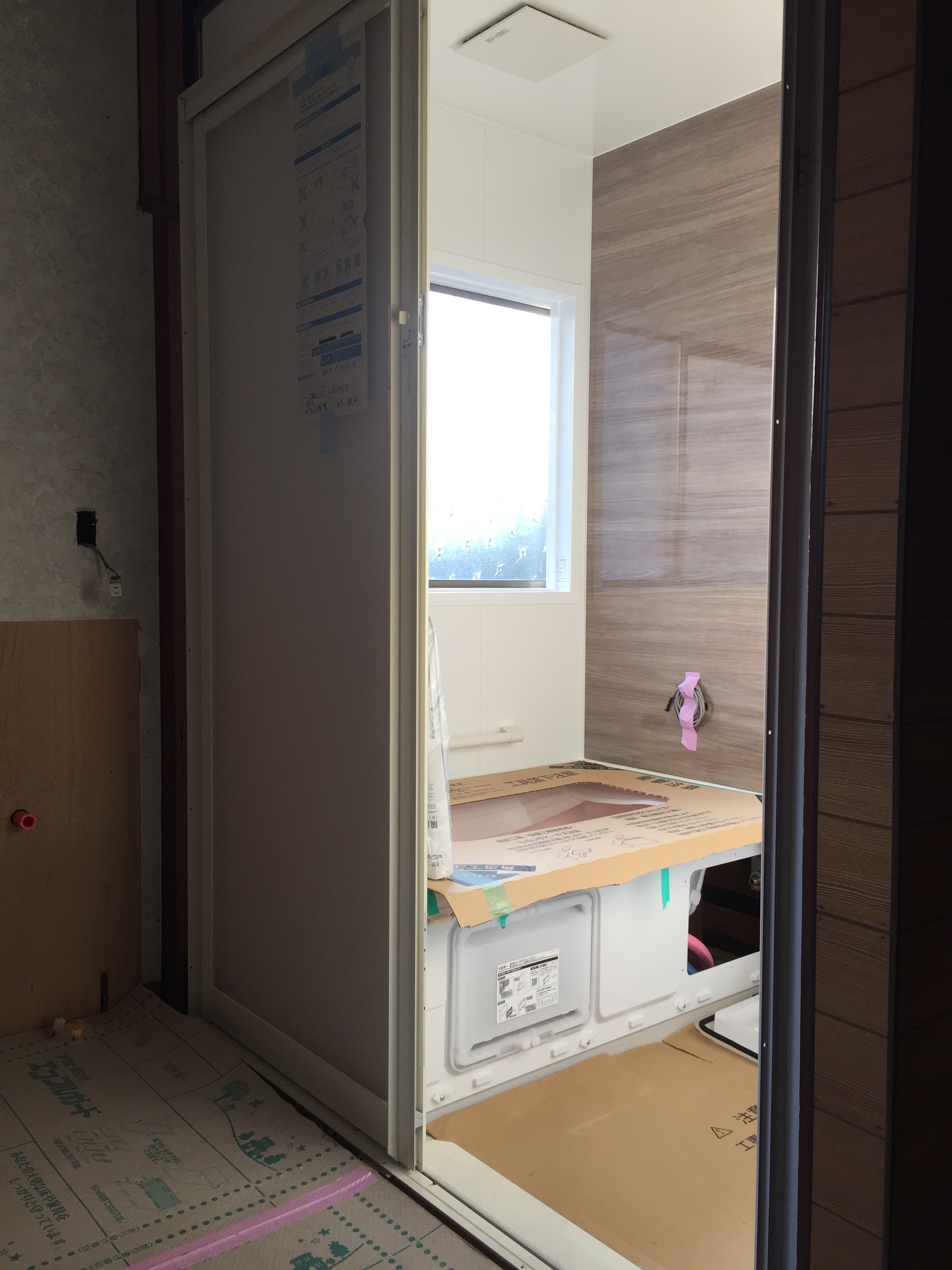 浴室・洗面室改装工事進捗状況!ユニットバスの組立が完了しました。これから洗面 室の造作工事に取り掛かります。