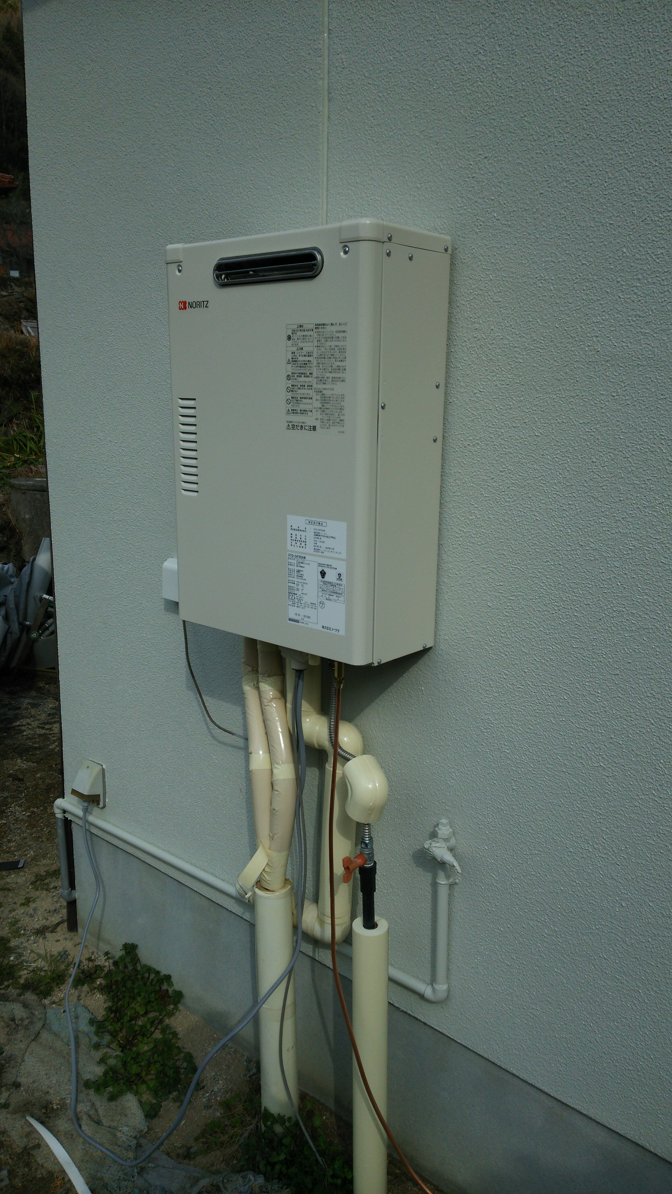 石油給湯器取替え工事中です。あとは配管の保温をして完成です‼