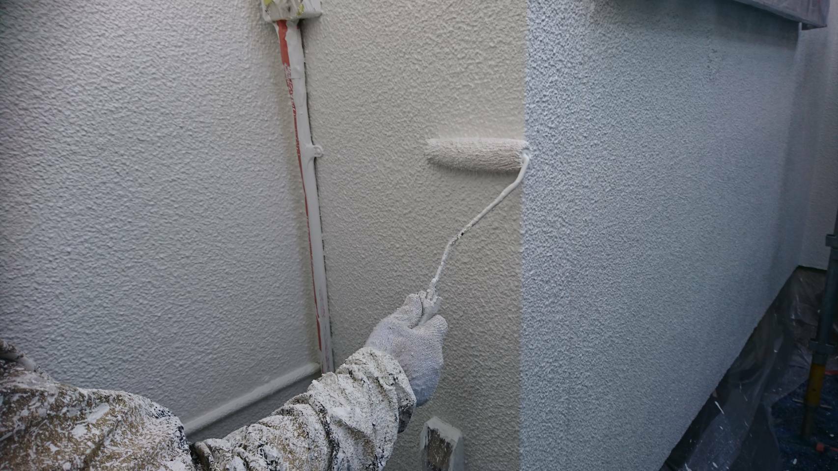 中規模改装工事進捗状況。外壁塗装工事の上塗り塗装中です‼