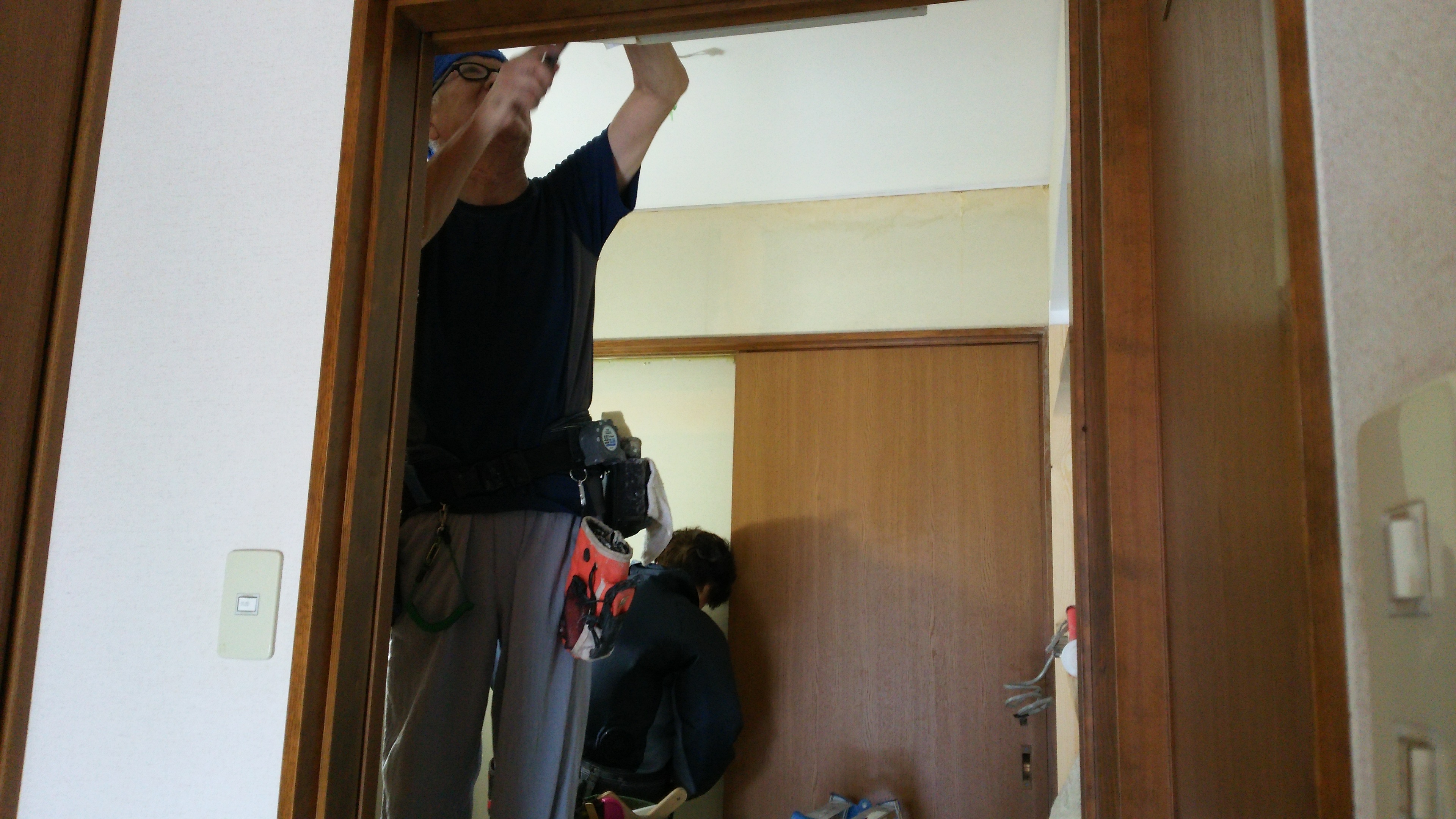 浴室・洗面・キッチン改装工事進捗状況。今日は洗面所の内装工事中です‼