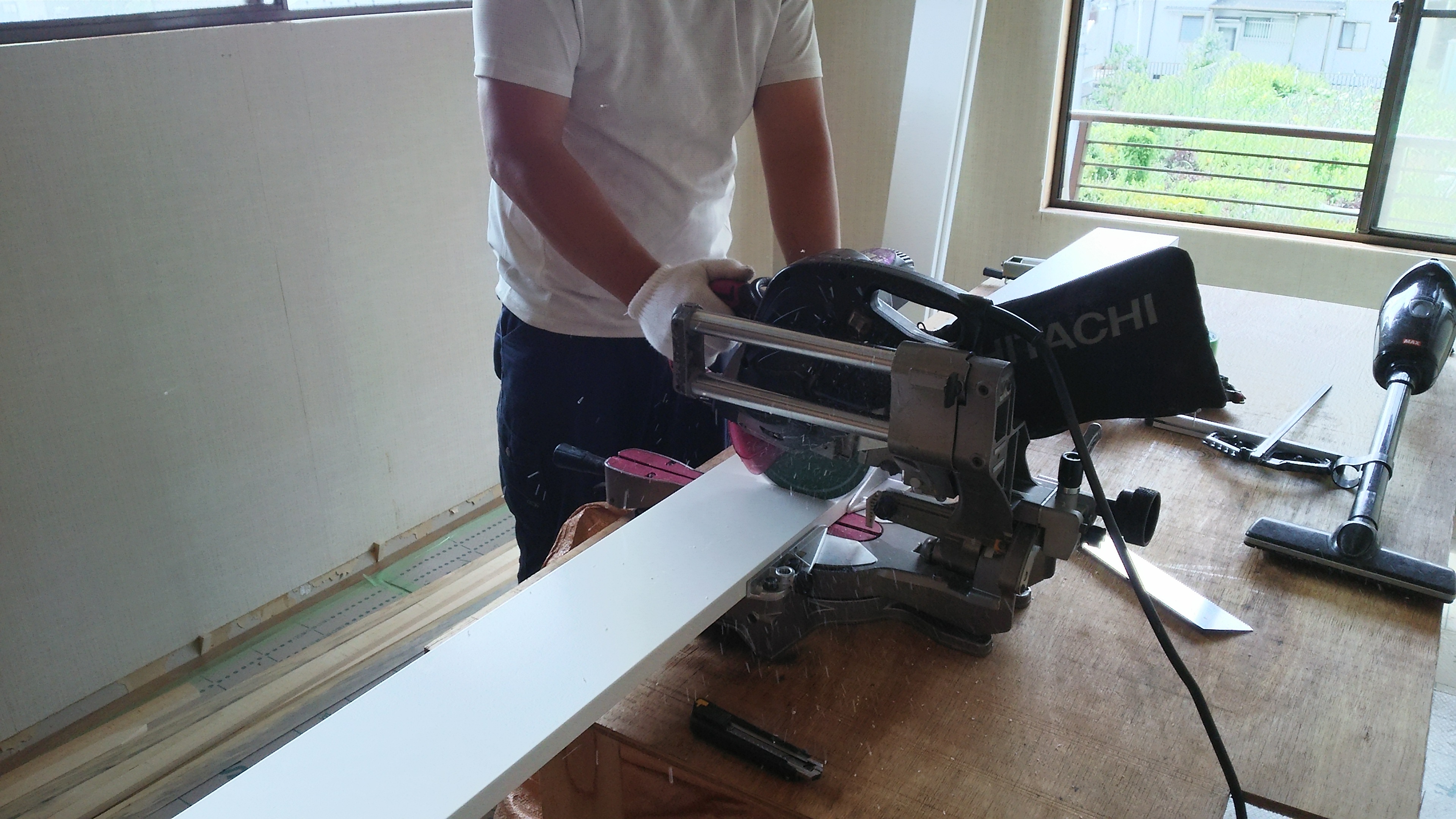 洋室フローリング・内装工事中です。ただいま窓枠の取り替えをしています‼