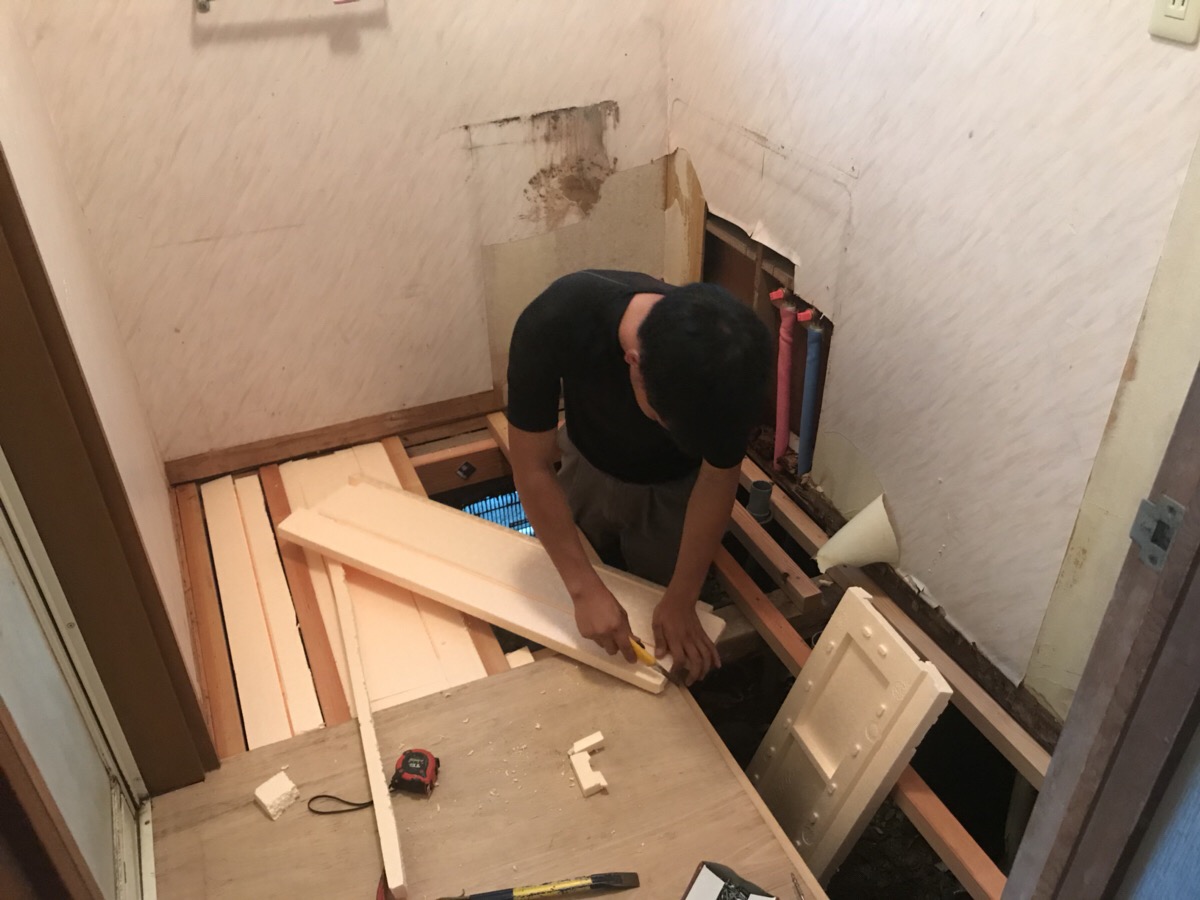 本日から洗面室造作工事、配管工事が始まりました!