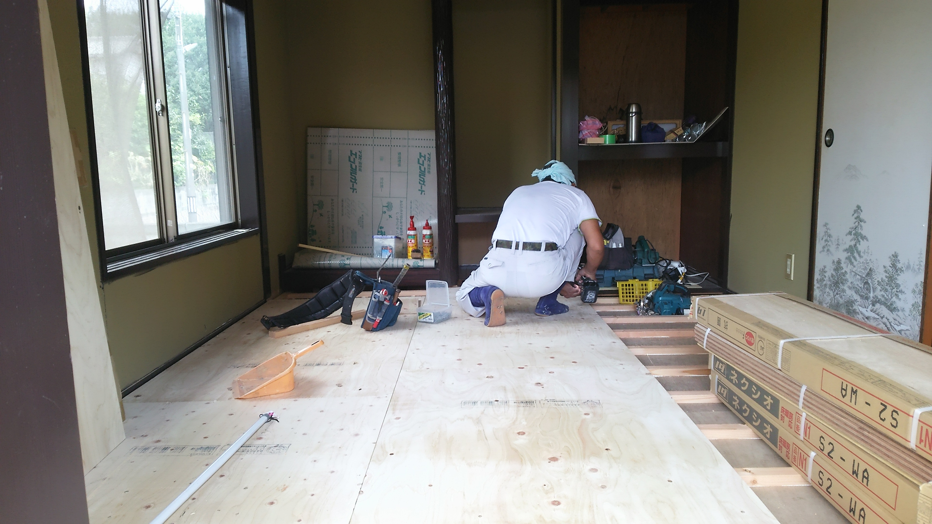 和室改装工事中です。今日はフローリングの木下地工事をしています‼