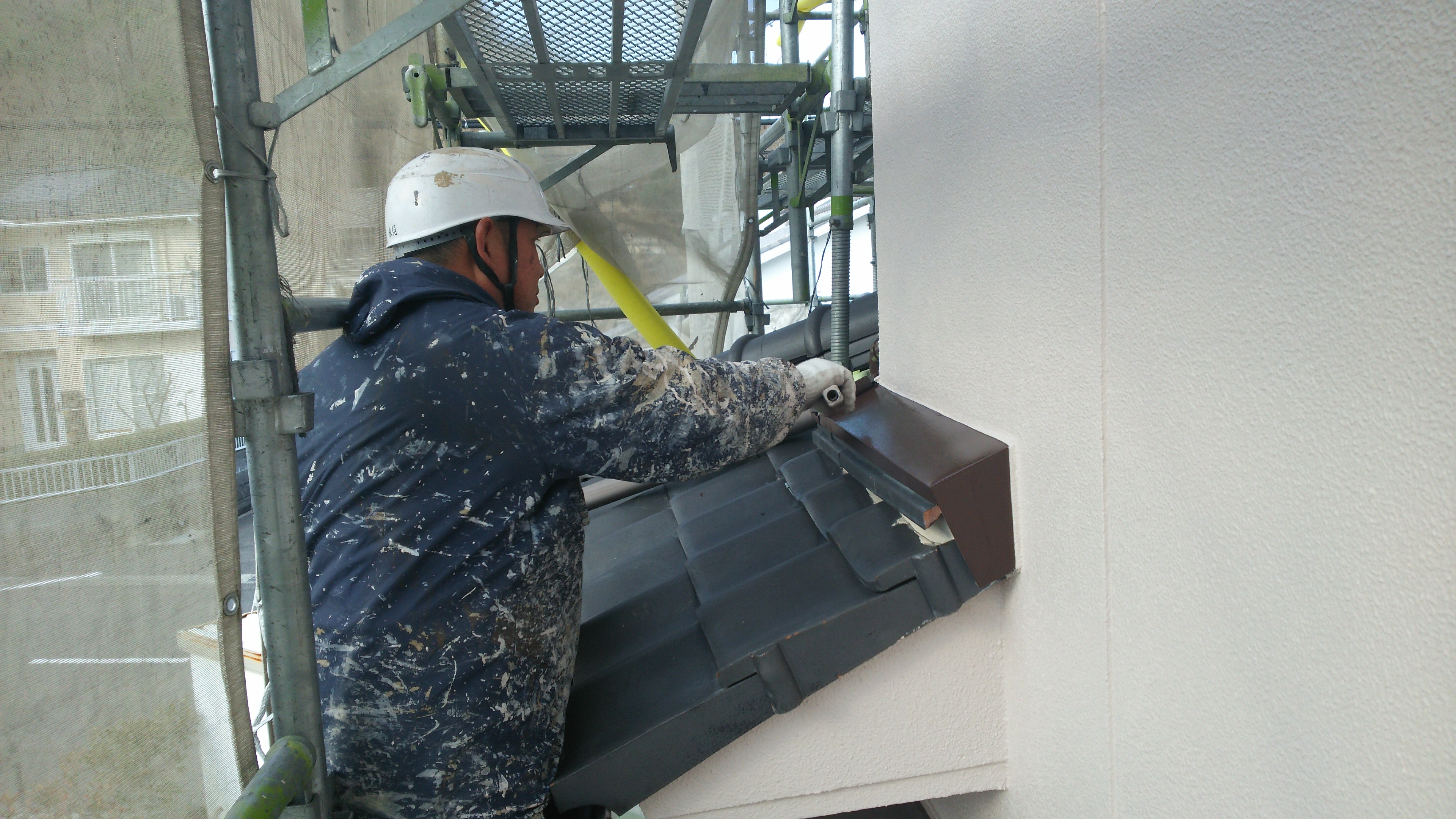 外壁塗装工事進捗状況。今日は付帯部の塗装をしています‼