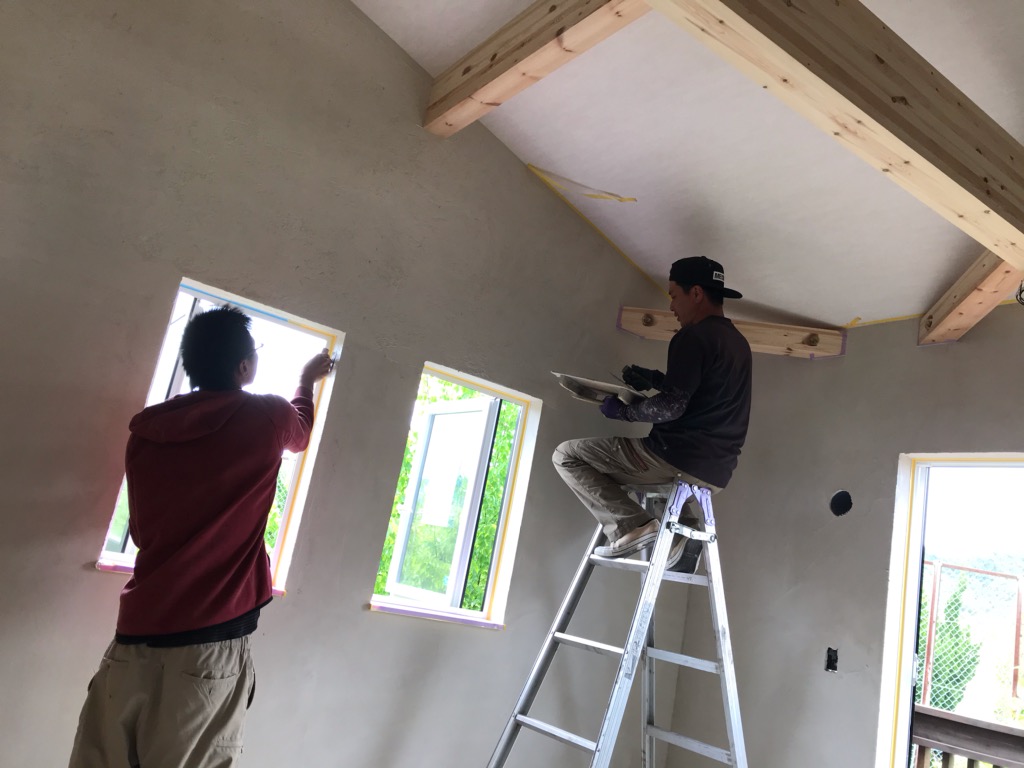 K様邸内装工事進捗状況! 左官屋さんが壁の仕上げを行なっています!