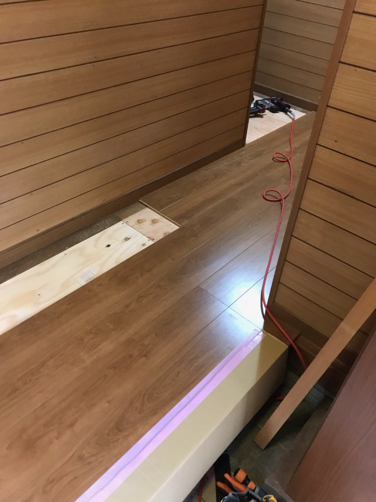 M様邸フローリング張替工事です!今日でフローリング張りは途中まで終わり、明日も続きです!