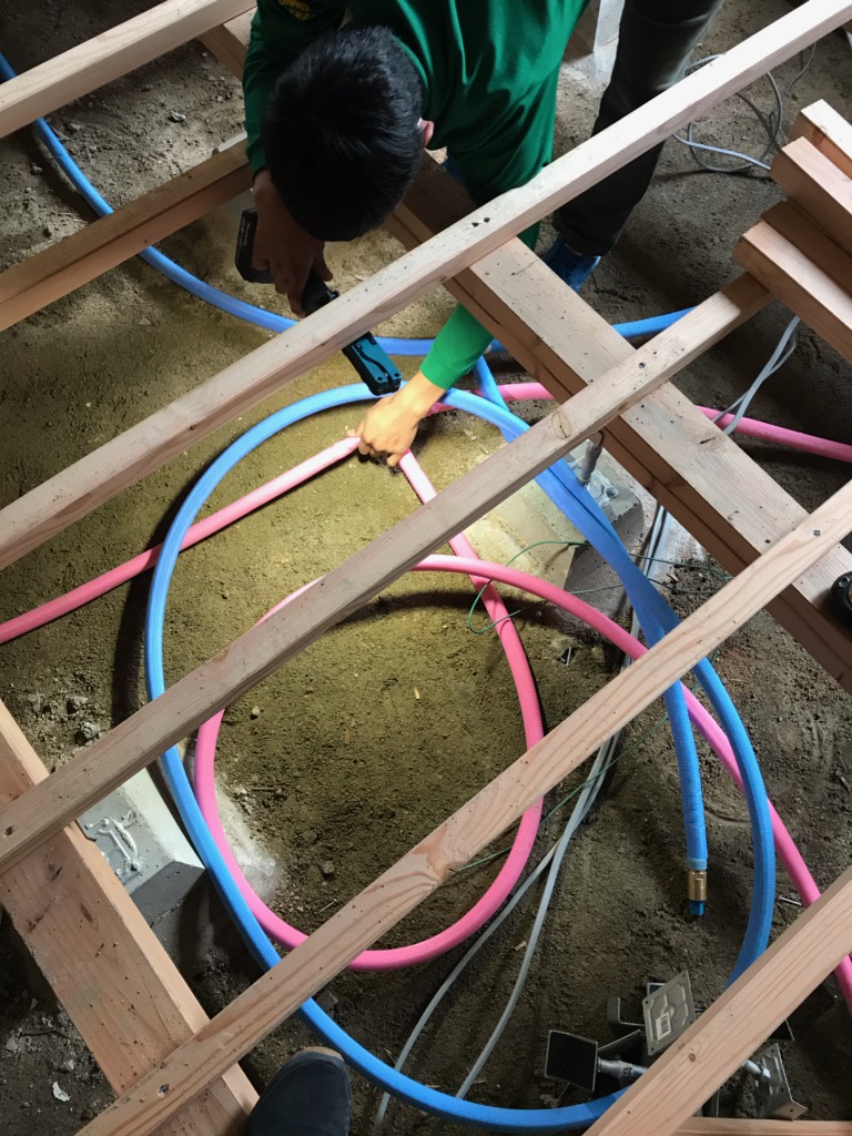 K様邸LDK工事進捗状況! 給水の水漏れ等が無いか確認しながらの配管作業を行なっています!