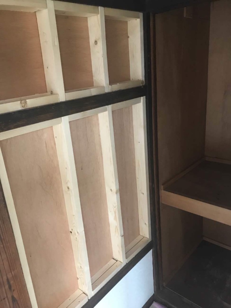 T様邸平家改修工事進捗状況です!物置を塞ぎ、ここにクロスを貼っていきます!
