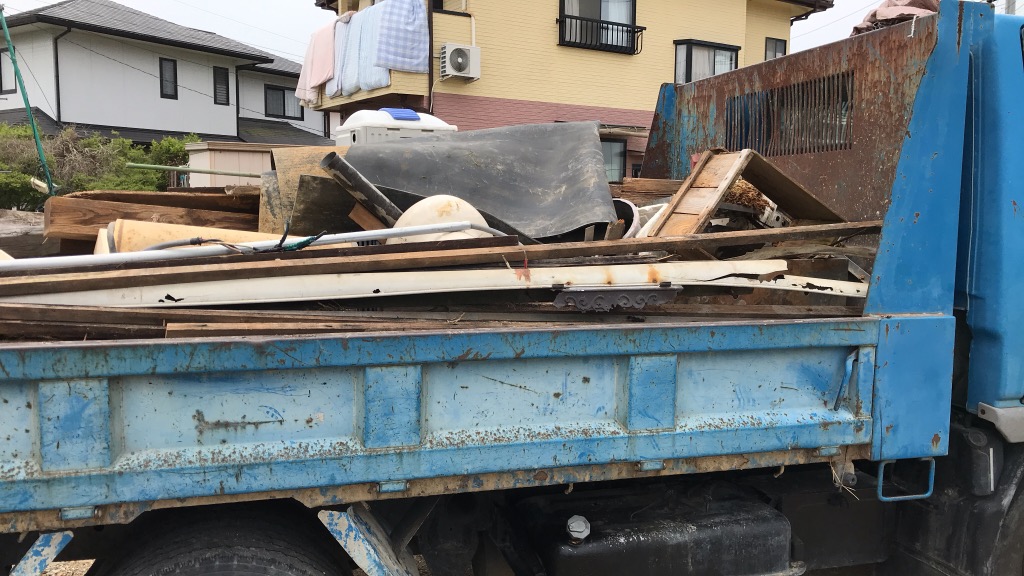 K様邸残材引き上げです! 新築の建物が完成し、敷地内にあった残材をダンプに積み込んだ所です!