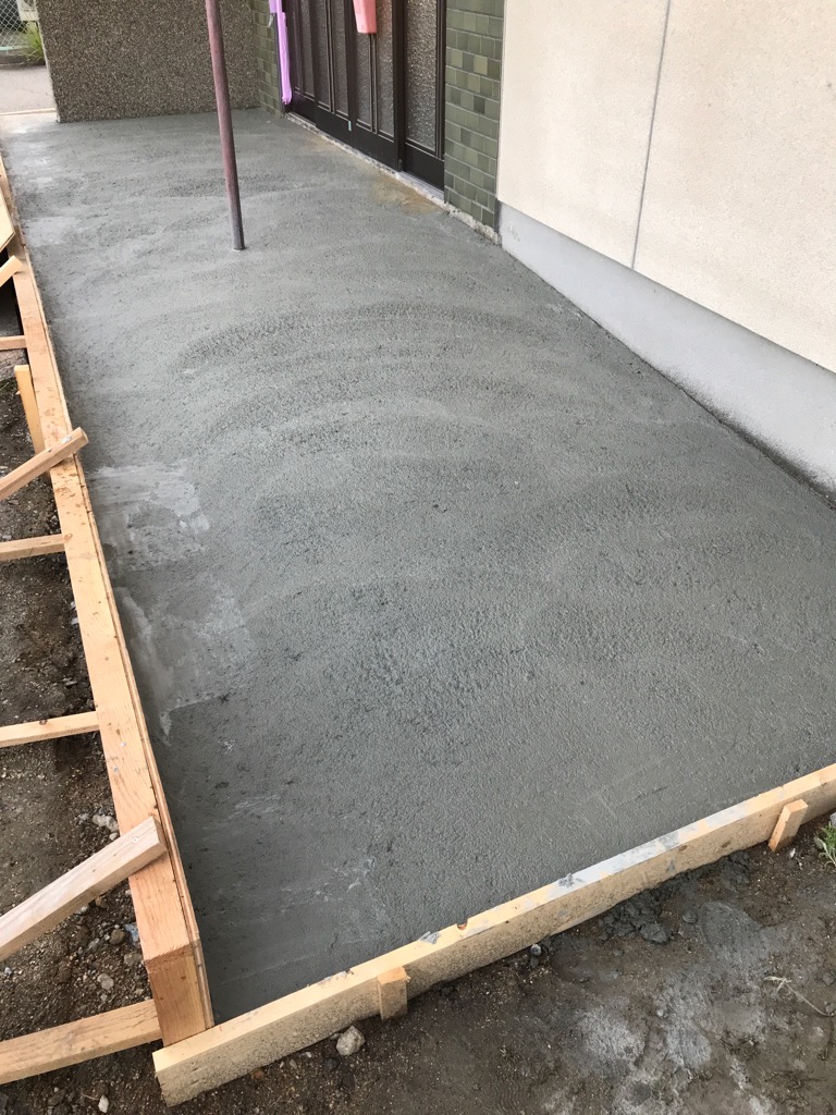 S様邸平家改修工事進捗状況です!本日玄関前の土間コンクリート打設でした!スロープも上手く仕上がりました!