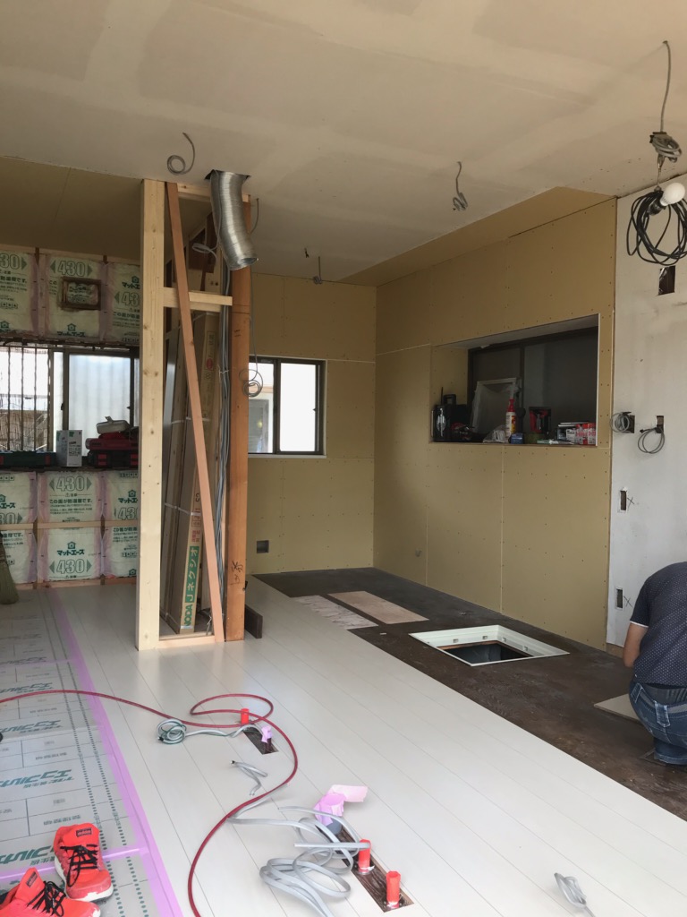 T様邸LDK工事進捗状況です!一昨日から継続で造作工事です!フローリングが綺麗に仕上がってきております!