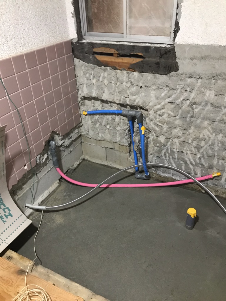 K様邸浴室洗面所工事進捗状況です!本日配管、配線を行いました。無事施工完了です。
