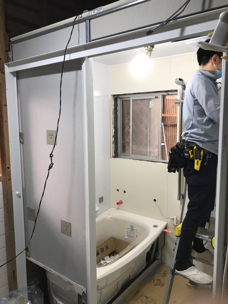 K様邸浴室洗面所工事進捗状況です!今日はユニットの組み立てでした!順調に仕上がっております!