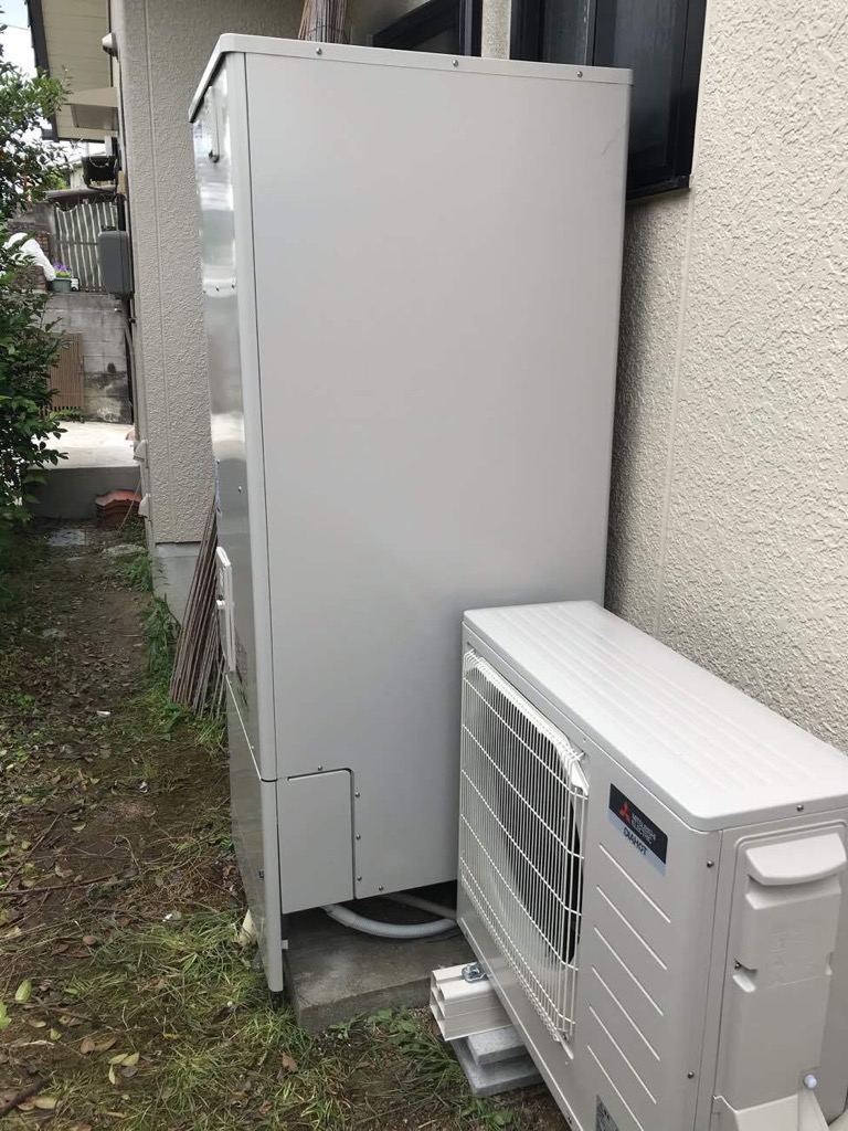S様邸エコキュート取替工事進捗状況です!既存の温水器をエコキュートと取替いたしました。無事取付完了です!