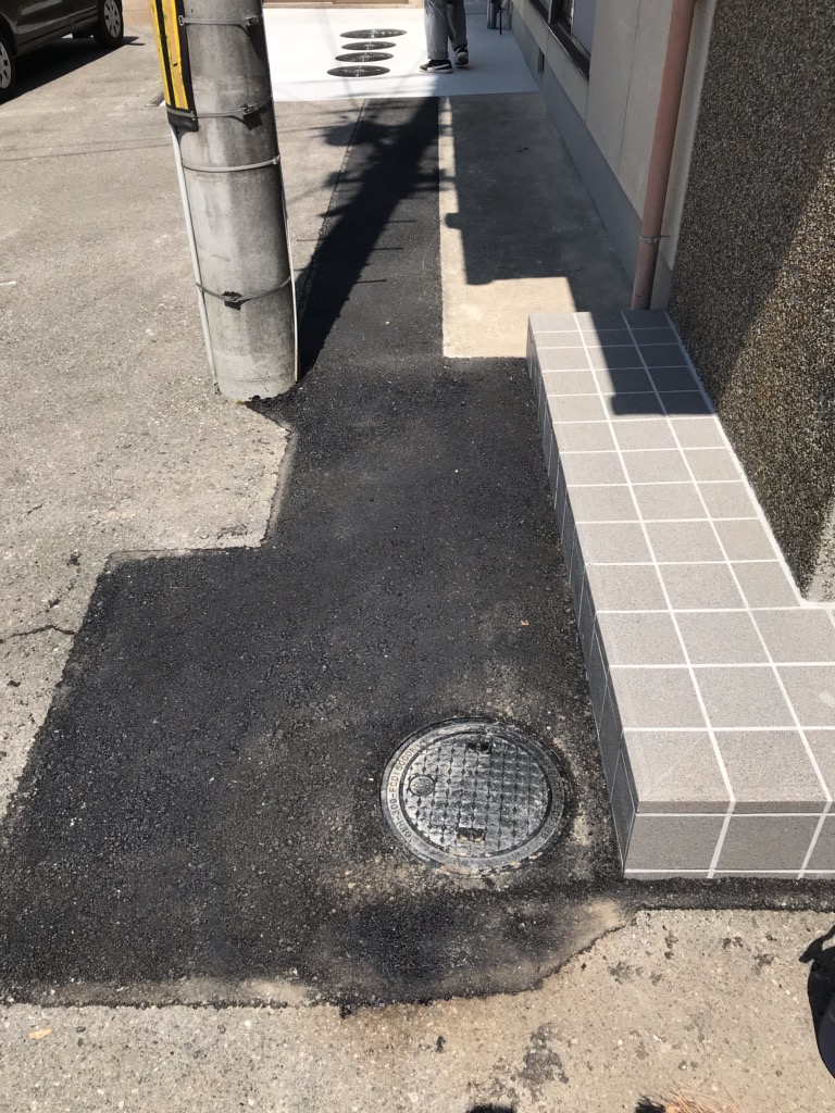 S様邸改修工事進捗状況です!先日作業するため、はつった部分をアスファルト舗装しました!