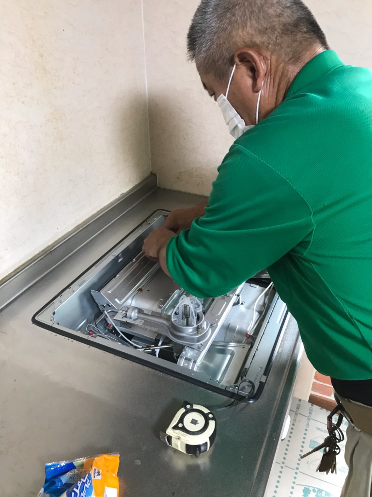 K様邸ガスコンロ取替工事の状況です!既存の器具を取り外し、汚れを落として新たなガスコンロを取り付けていきます!