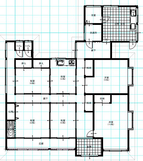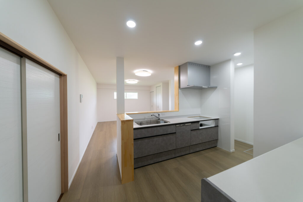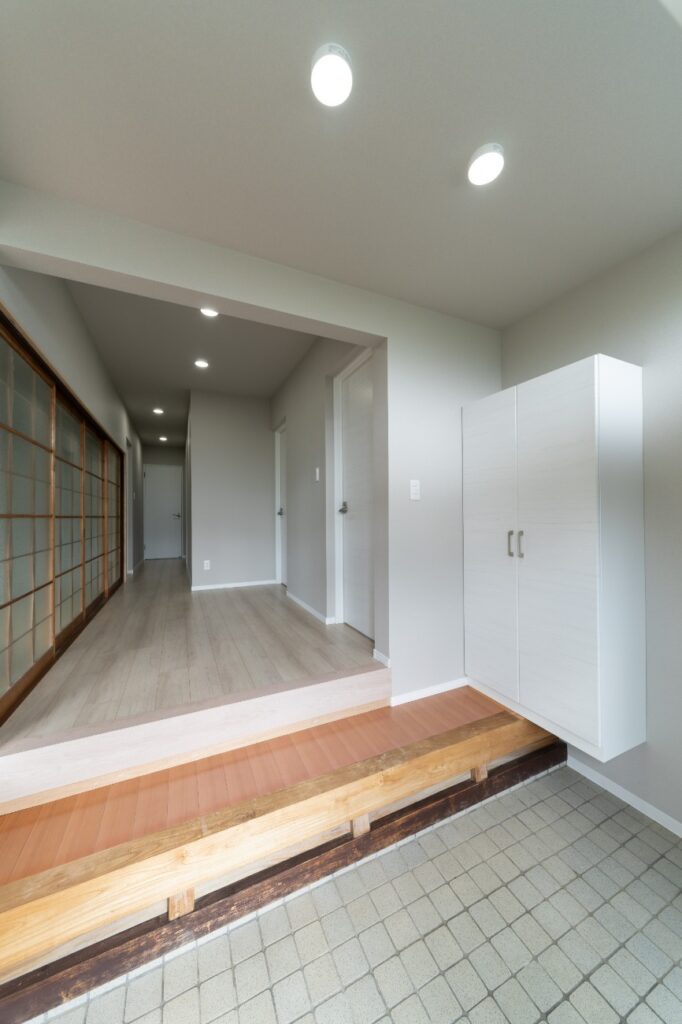 お客様をお迎えする和室と仏間は、これまでの思い出や格式を大切にするために既存のまま残し、 それ以外の廊下・和室2間・広縁を一体化し、家族の中心となる大きなLDK空間へと再構築するプランをご提案しました。 古民家特有の区切られた間取りを開放し、現代の生活動線に合わせた空間設計です。 また、水まわりについてはお風呂のみ共有し、キッチン・洗面台・トイレはそれぞれ2か所ずつ設置。 収納面では、ご両親の衣類などをまとめて保管できるスペースを確保するなど、三世代の暮らしやすさに配慮したプランを採用。 親世帯・子世帯が互いに気兼ねなく利用できる環境を整えています。 寒さが気になる古民家の課題に対しては、既存の土壁を活かしつつ、その上からグラスウールによる断熱材を施工。 さらに窓断熱も併用することで、冬季でも暖かく快適に過ごせる住まいを実現しました。 設備面では、井戸水から上水道への切り替えをし、浄化槽設備へ変更しました。 今回の工事では、「子育てエコホーム支援事業」「先進的窓リノベ2024」「浄化槽補助金」 の活用により、合計170万円の補助を受けることができ、家計負担を抑えながら機能性と快適性の向上を実現しました。
