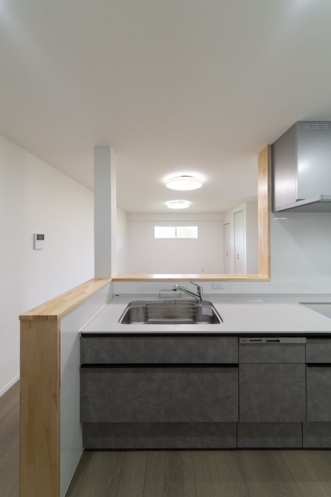 もともとのキッチンは独立型で、部屋の一角に設置されています。お子さまの様子や気配を感じられたり、コミュニケーションの取れる対面キッチンへの変更を望まれていました。また家事負担を減らすために、動線や調理・配膳・片付けが効率的に行われるようプランニングを重ねました。