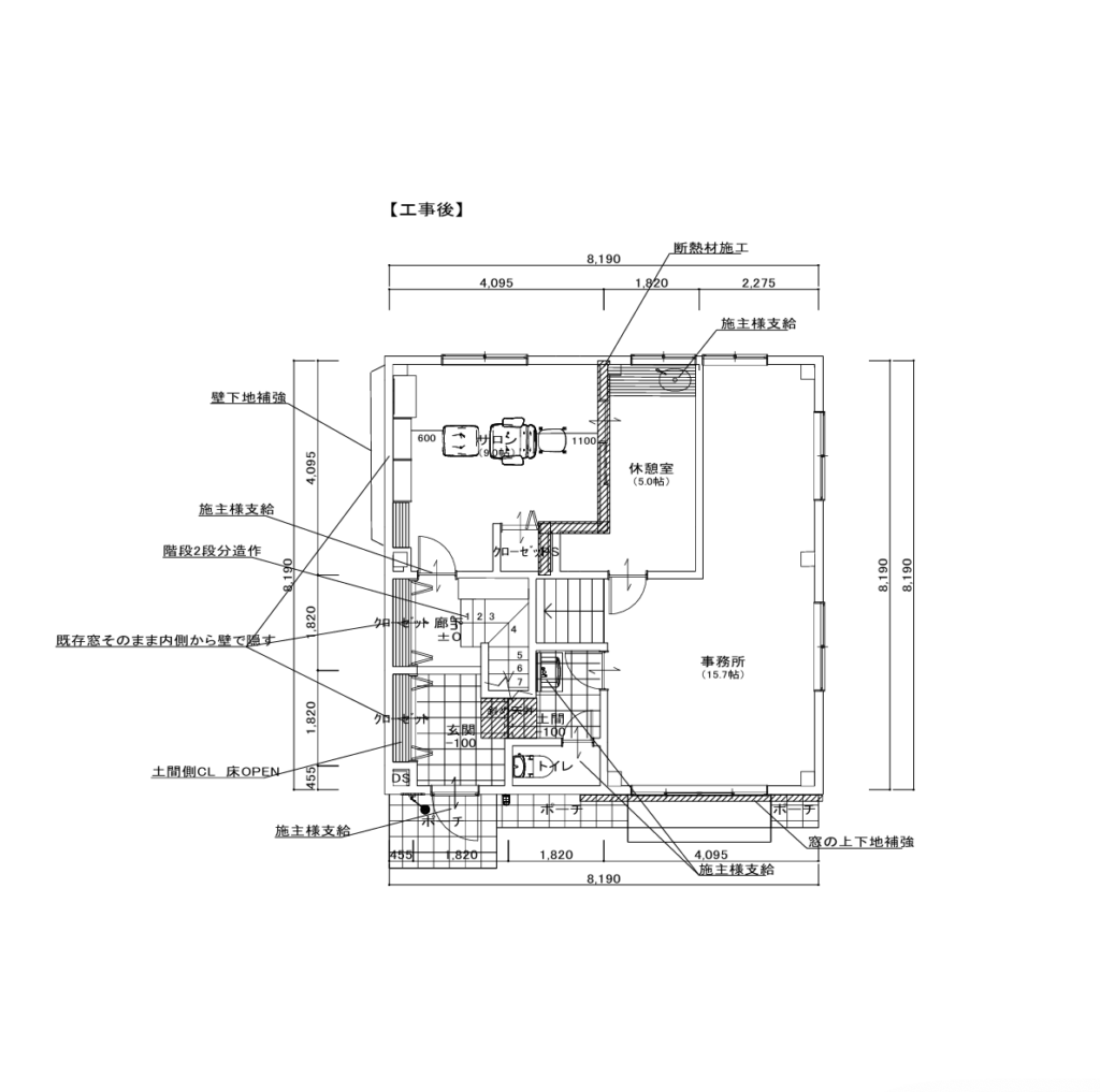 今回は、もともと事務所の休憩室として使われていたスペースを、