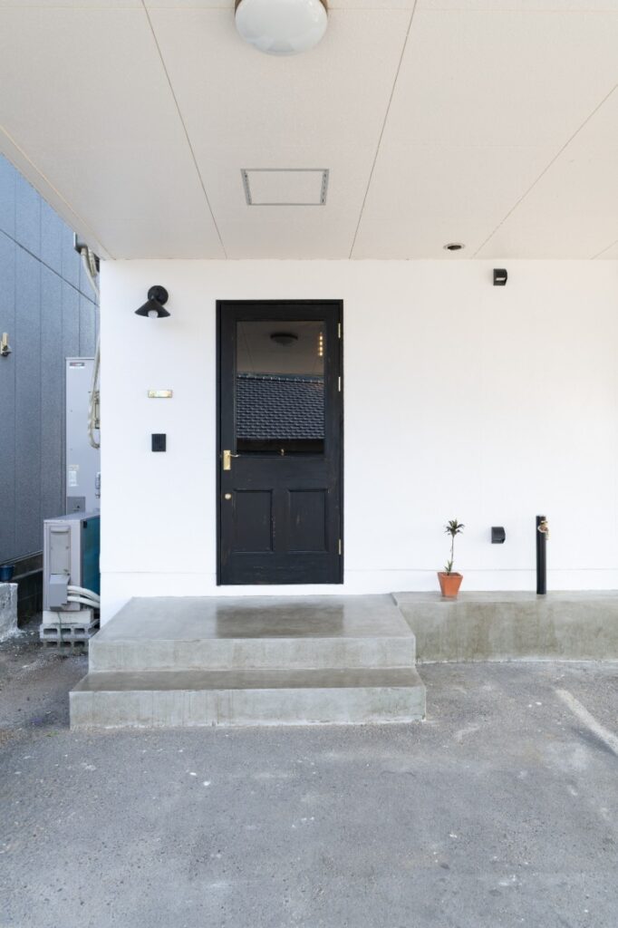 サロンとしての入り口が完成しました! 白い外壁に、落ち着いた黒のドアが映える玄関に。 過度な装飾はせず、静かに迎え入れてくれる佇まいとしています。