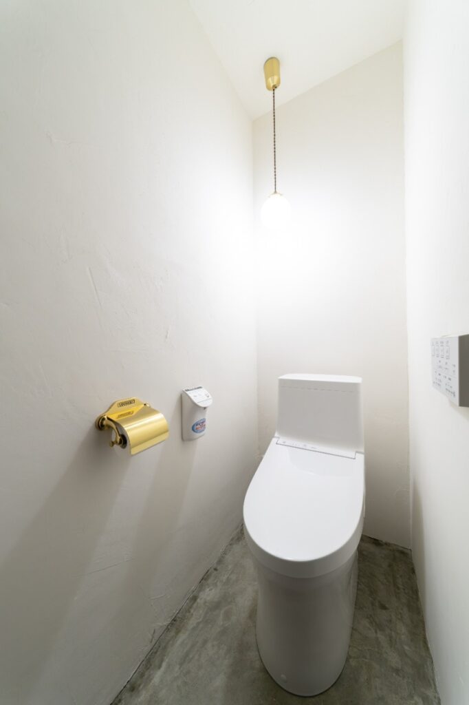 シンプルながら、明るく清潔感のあるトイレです。ゴールドの小物を添えることで、空間に華やかさが生まれます。