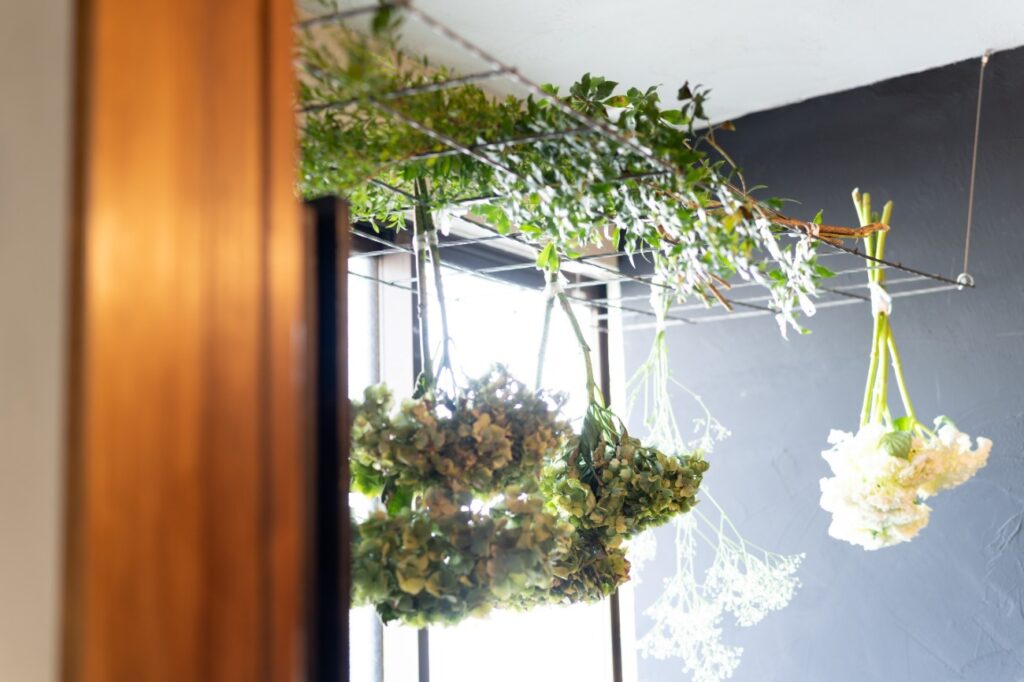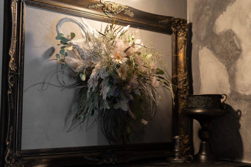 ドライフラワーを飾ることで、空間にやわらかな表情が生まれ、サロン全体にやわらかな温度が加わりました。 落ち着いた空気の中に、ほっとする彩りが感じられます。