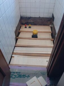 - リフォーム前の段差は解体してフラットに、奥いっぱいに洋式トイレを設置しましたので、 トイレ空間が広く感じるように変わりました。